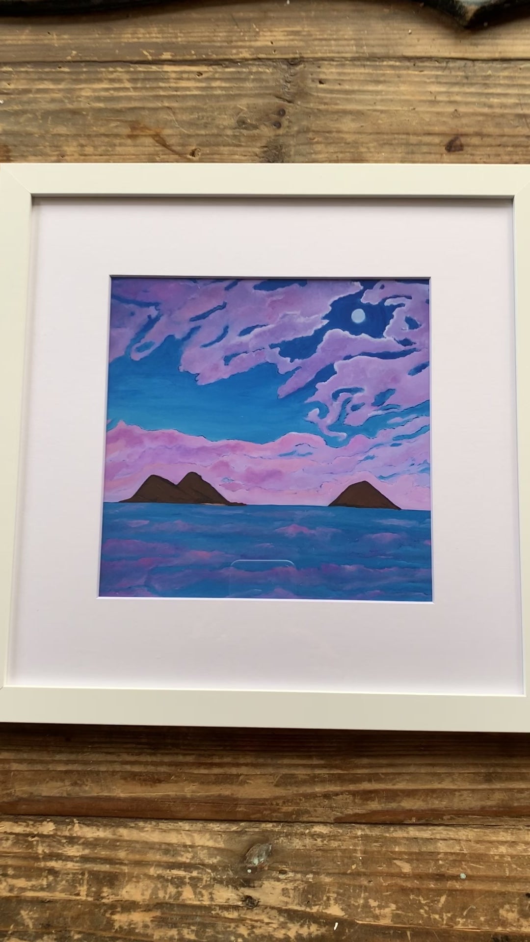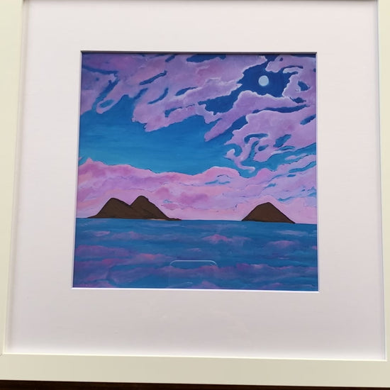 This full moon represents a beautiful and powerful time. It is a huge release for me, to surrender, to clear energy, and most of all to love, and loving those who are present in our lives. As an artist, I paint only when my spirit feels ignited, and often my paintings have a sense of calm serenity and it feels healing for me. It's a quality that makes it a Dream Series Painting. When the Dreams series first started when I was in witness protection and I couldn't go anywhere, I certainly couldn't travel. Yet I had dreams of places that felt magical to me and painting transported me there. Dreams of Lanikai painted in 2021 is an ode of gratitude and reverie that now transports me in time. "⏤Juanita Aguerrebere Ka'āhanui, artist.