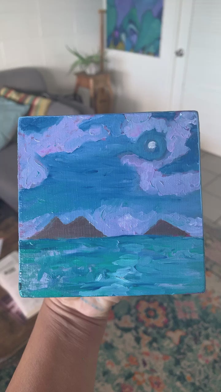 This full moon represents a beautiful and powerful time. It is a huge release for me, to surrender, to clear energy, and most of all to love, and loving those who are present in our lives. As an artist, I paint only when my spirit feels ignited, and often my paintings have a sense of calm serenity and it feels healing for me. It's a quality that makes it a Dream Series Painting. When the Dreams series first started when I was in witness protection and I couldn't go anywhere, I certainly couldn't travel. Yet I had dreams of places that felt magical to me and painting transported me there. Dreams of Lanikai painted in 2021 is an ode of gratitude and reverie that now transports me in time. "⏤Juanita Aguerrebere, artist.